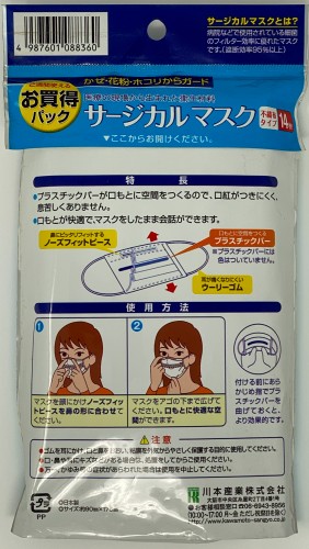 【売切れ】カワモト 口もと空間 サージカルマスク 2ウィーク 14枚入